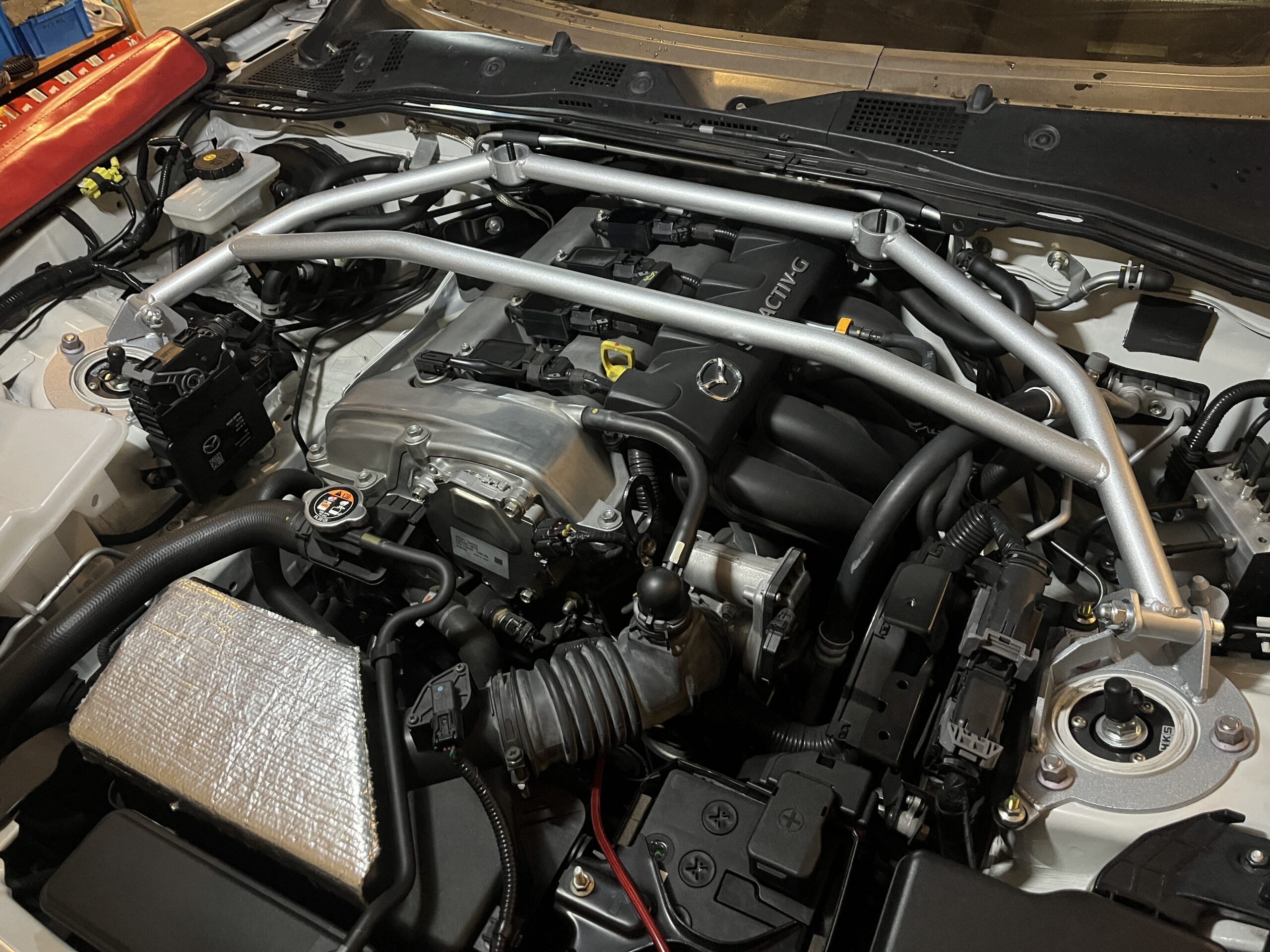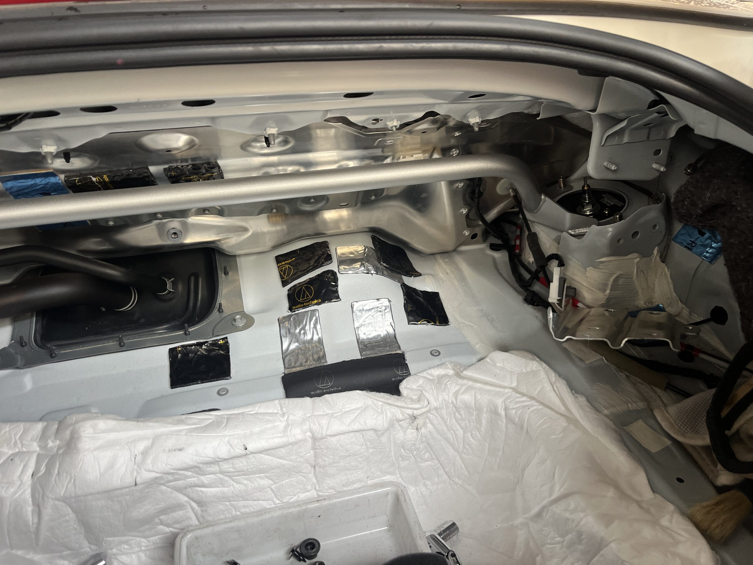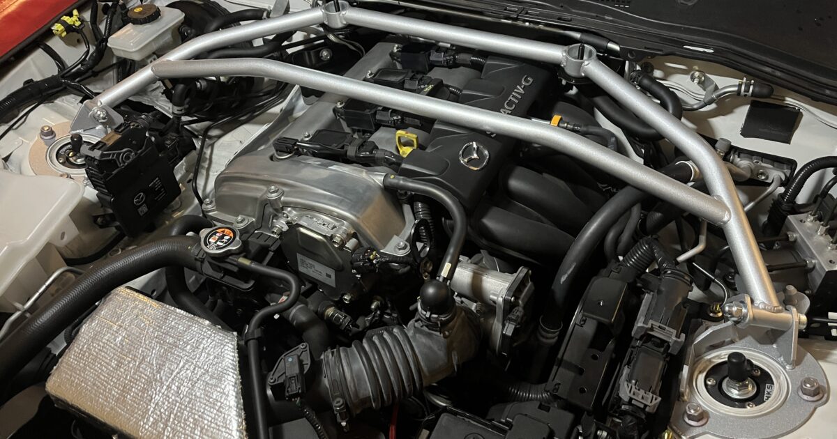 まずは前後タワーバー取り付けから。今回は、関西サービスさんのタワーバーを前後取り付けです。