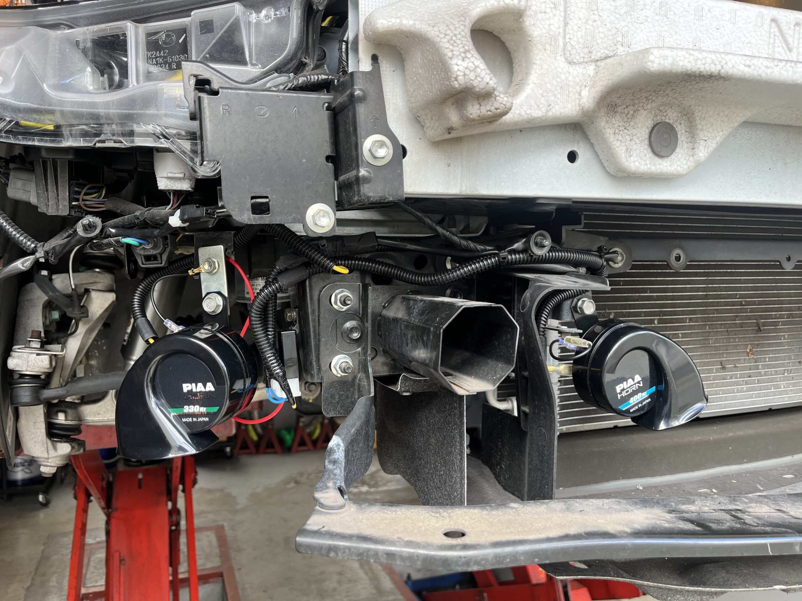 他にもメンテなどはありますが、ホーン交換もありましたので、バンパー取り外し!