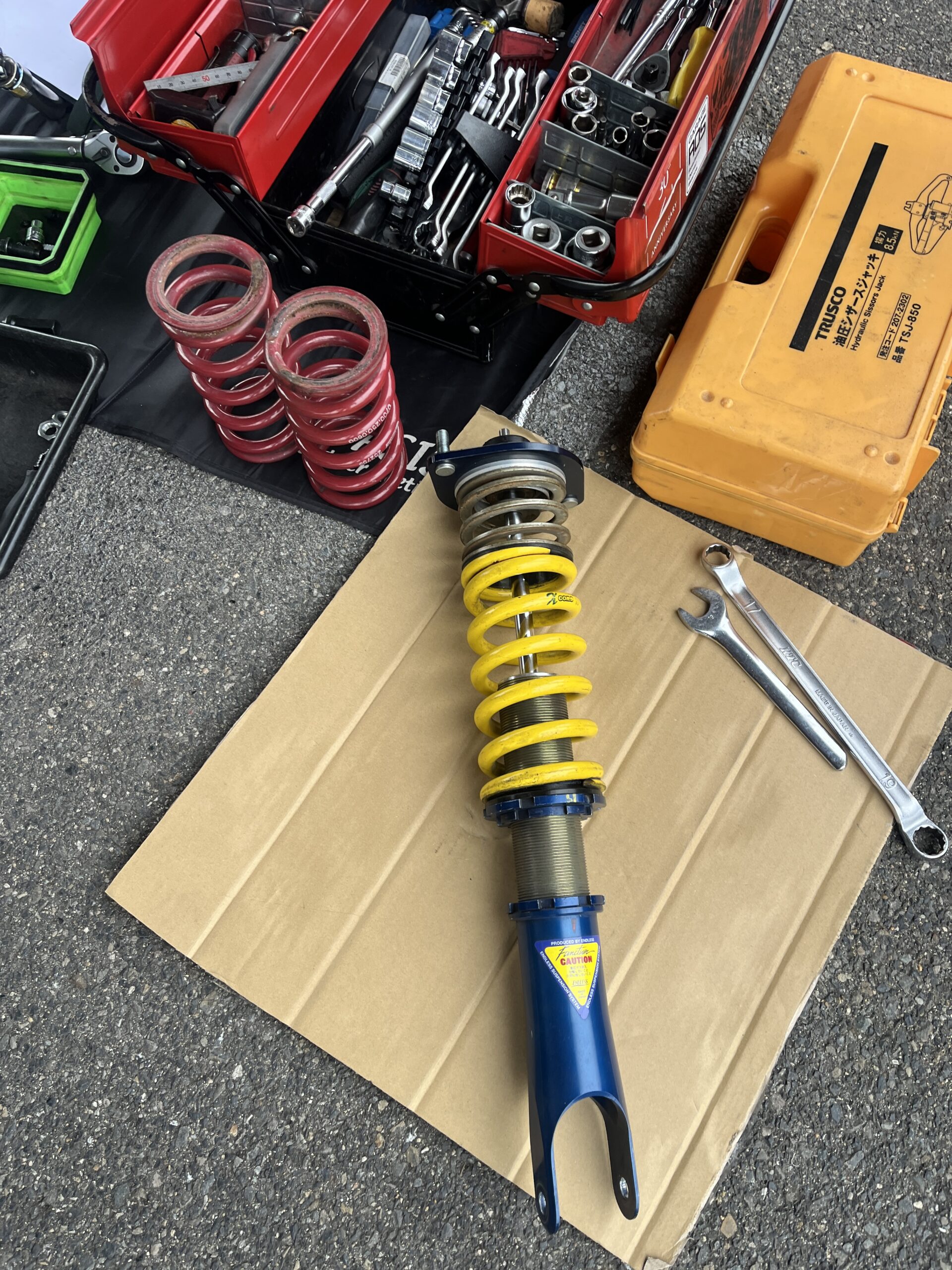 とりあえず持ち込みのセットは、良い方向でしたので、さらに進める方向で早速リアのスプリング交換