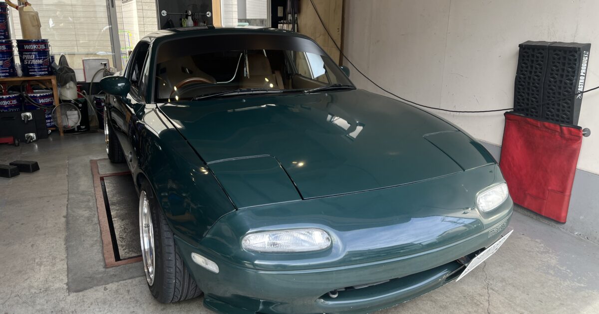 こんちわ〜 預かりのND号は、ほぼ完成〜 4点式ロールケージ、レカロシート、シートベルトアンカーとスポーツ走行初めてセットの完成ですね! 後は細かいところ仕上げて引き渡しできそうです。 午後からは、NA8がレッカーで入庫 […]